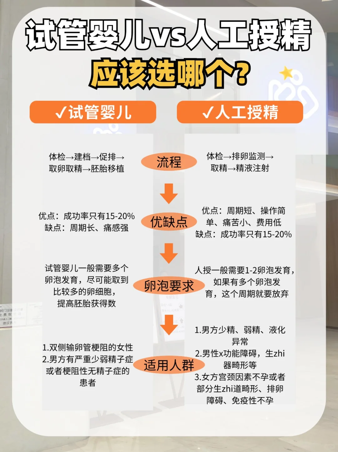 人工授精:成功率只有15-20%试管婴儿:周期长、别痛感强